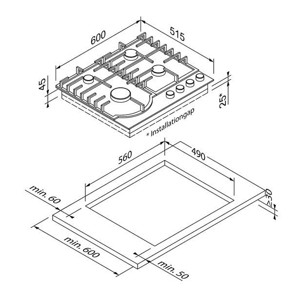 - Installation dimensions: 4.5 x 56.0 x 48.0 cm