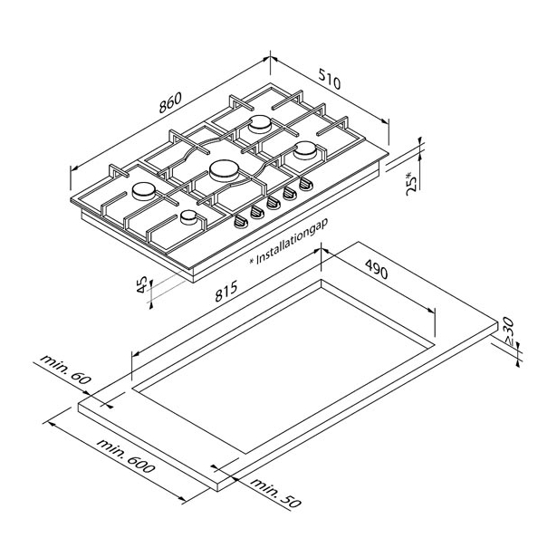 • Appliance dimensions: 9.0 x 86.0 x 51.0 cm