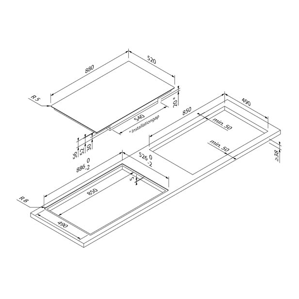 - Appliance dimensions: 5.2 x 88 x 52cm