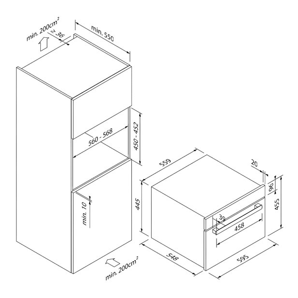 - Appliance dimensions: 45.4 × 59.5 × 56.8 cm