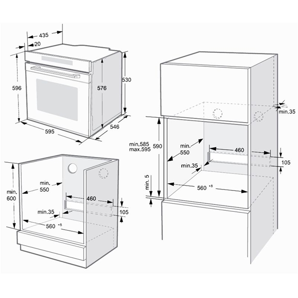 • Appliance dimensions: 59.5 x 56.5 x 59.5 cm