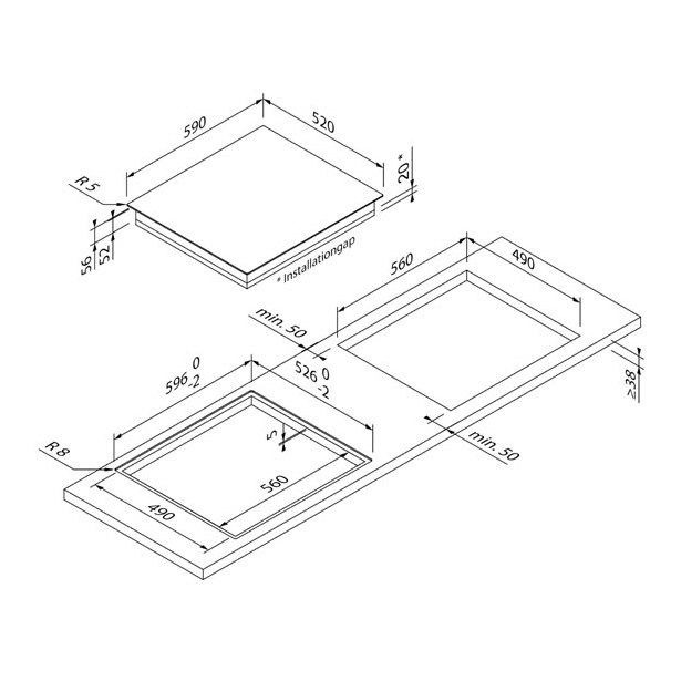 • Appliance dimensions: 5.2 x 59 x 52 cm