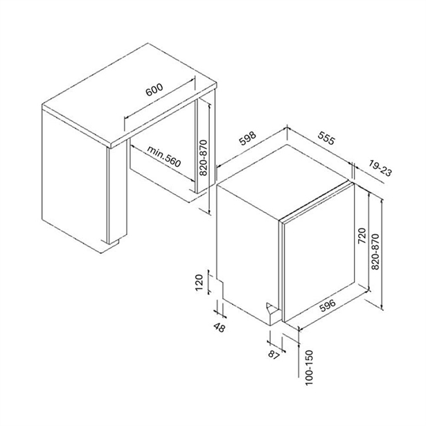 - Built-in dimensions: 81.5 x 59.8 x 55.0 cm