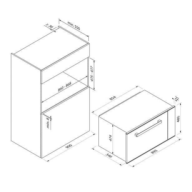 • Appliance dimensions: 48.0 x 89.5 x 54.6 cm