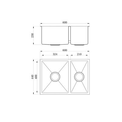 Zeus Kratos Under/Overmount 1 1/2 Bowl Sink 600 x 440 x 230mm