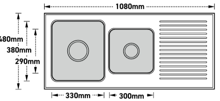1000mm (1 + 1/2 Bowls)