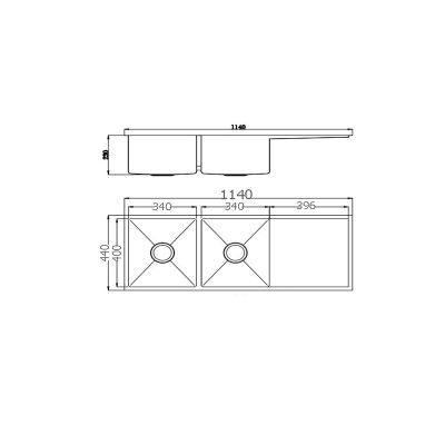 Zeus Helios Under/Overmount Double Bowl Sink with Drainer W1140mm