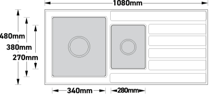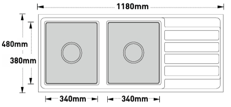 1180mm x 480mm x 210mm - Main Bowl Size (LxW):